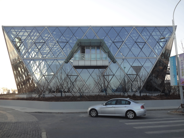 北戴河小镇中心:空间钻石的建筑立面,超大单元(单板块面积25平米)框架安装;万向铰的安装,将板块荷载传递到柱结构上;Rhino软件独特的板块下料技术让复杂的空间变为简单的积木叠加过程;